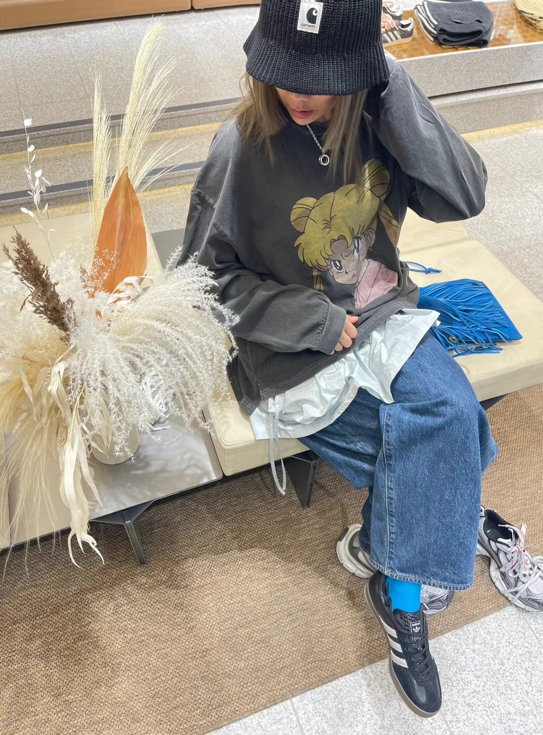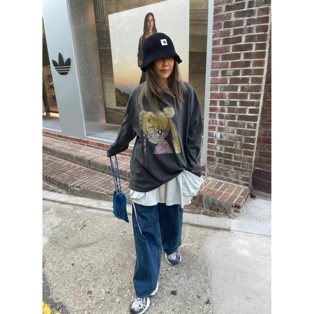 正韓 洗舊感美少女戰士氣噗噗T 現貨鐵灰