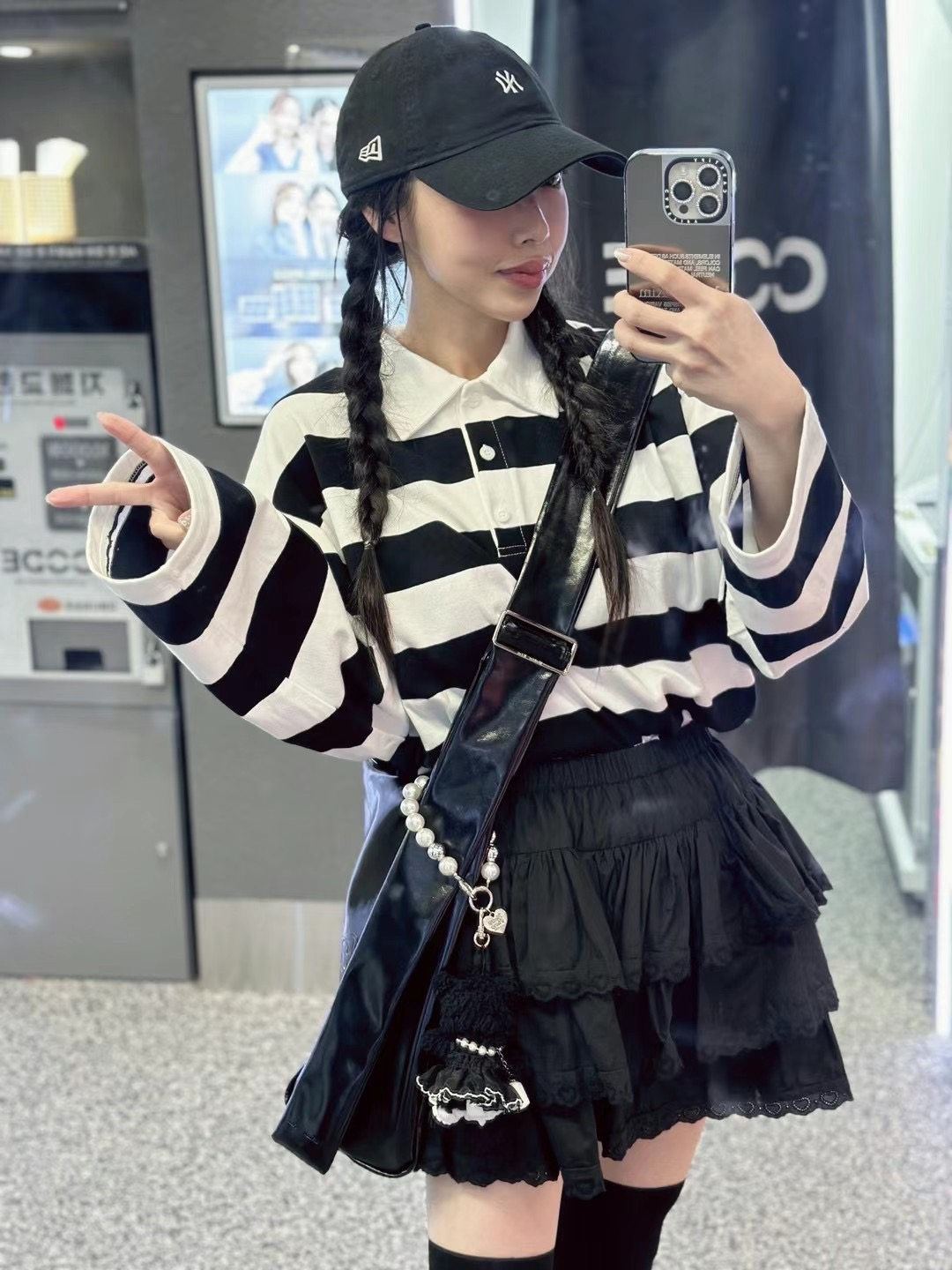 正韓 條紋POLO衫上衣 現貨黑白條紋