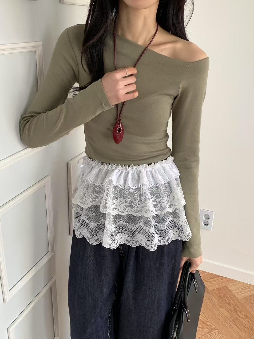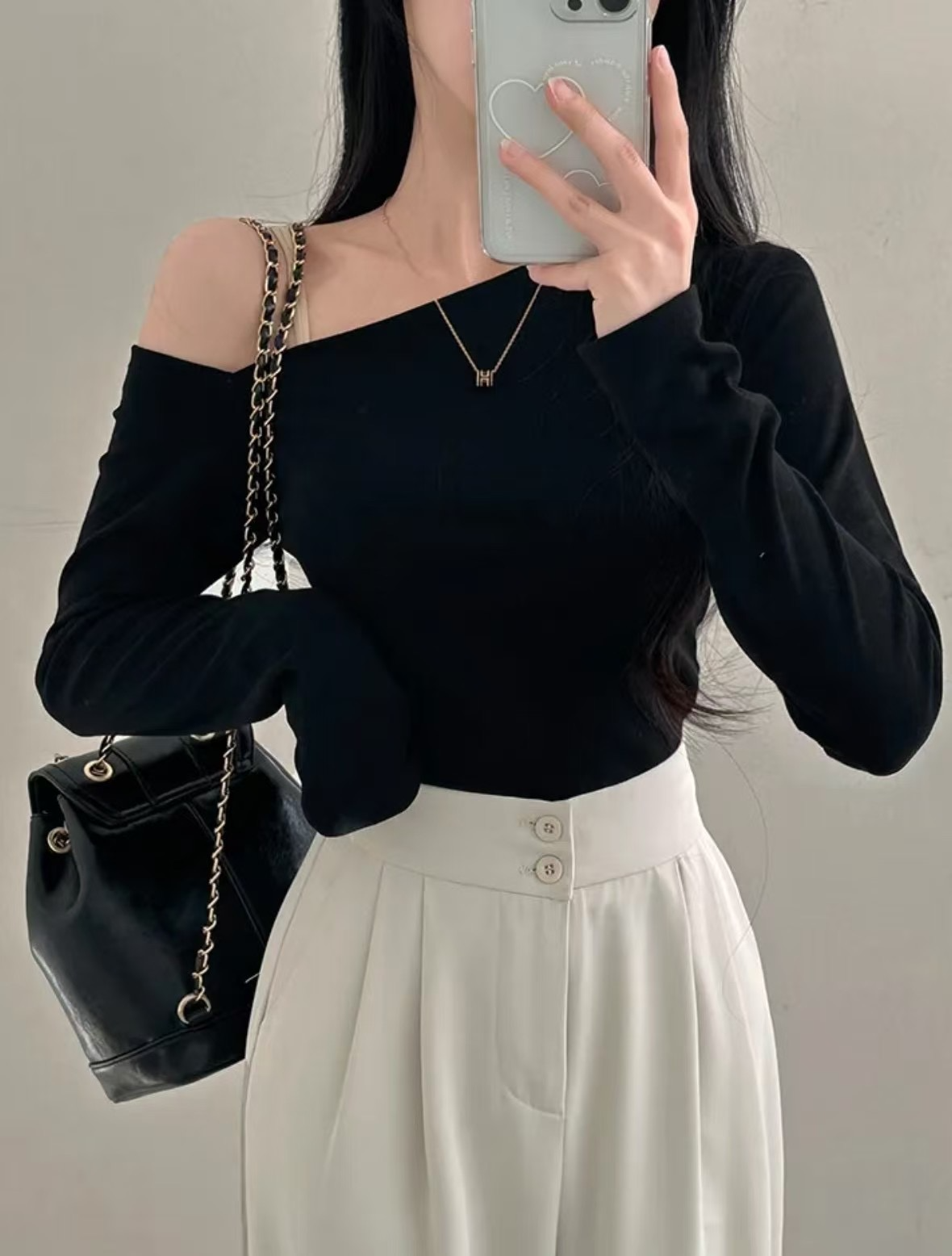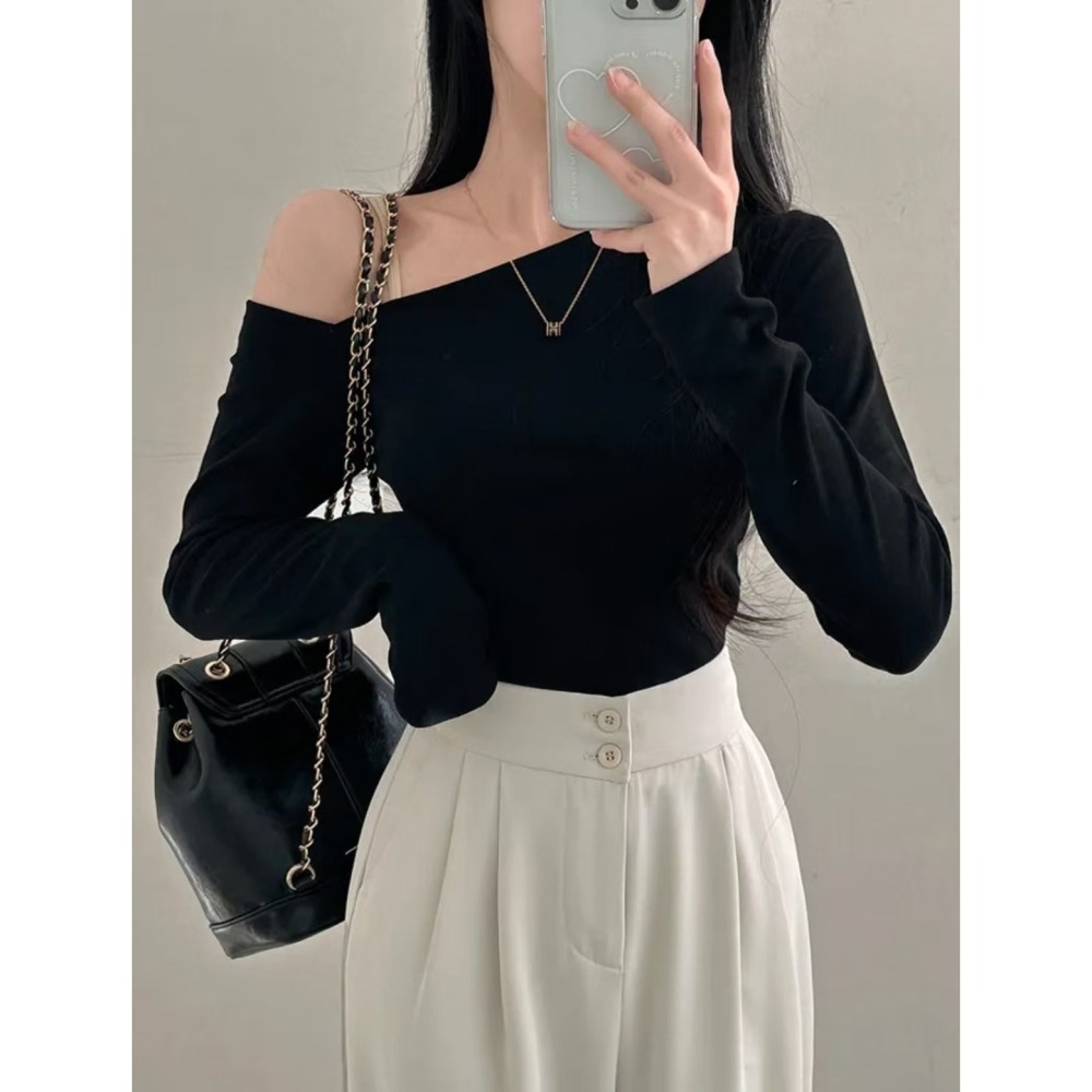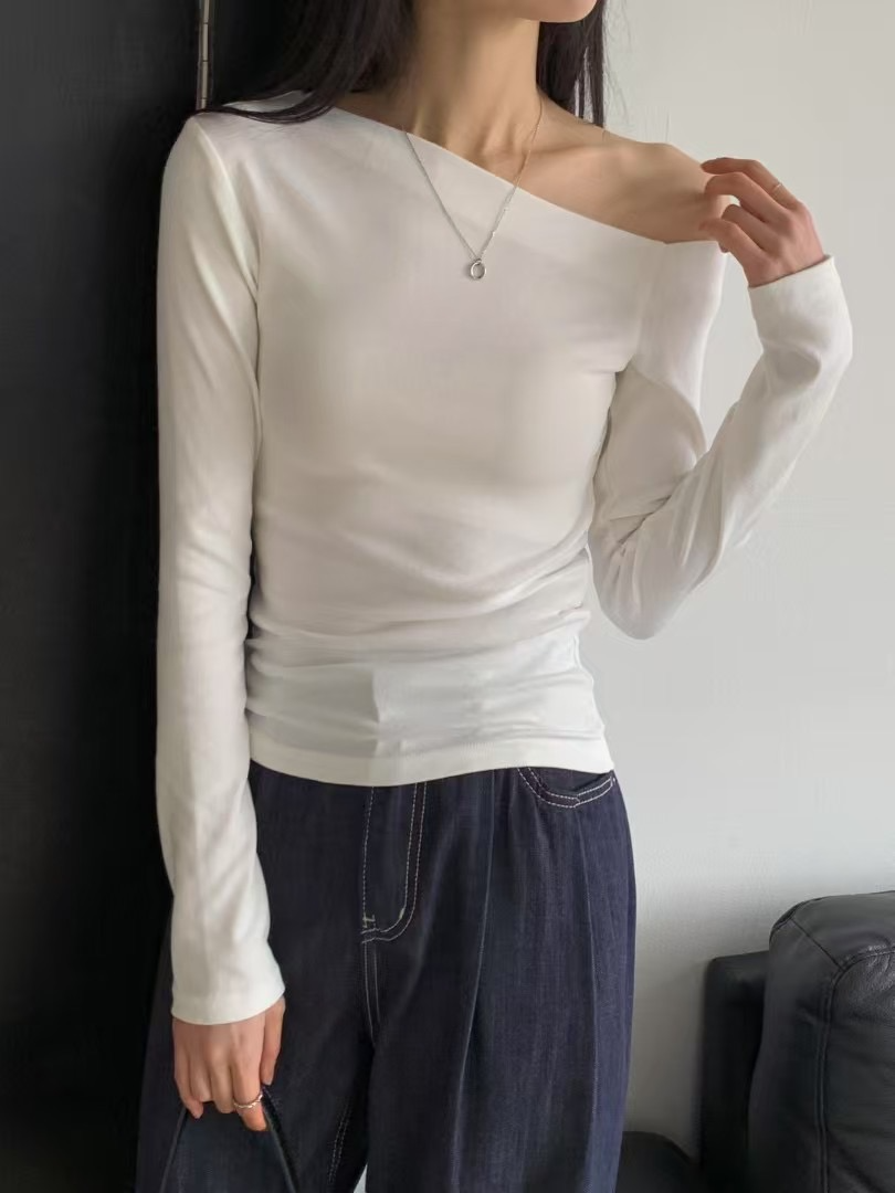 - 合身版型的斜肩露肩上衣T恤,彈性極佳質感柔軟