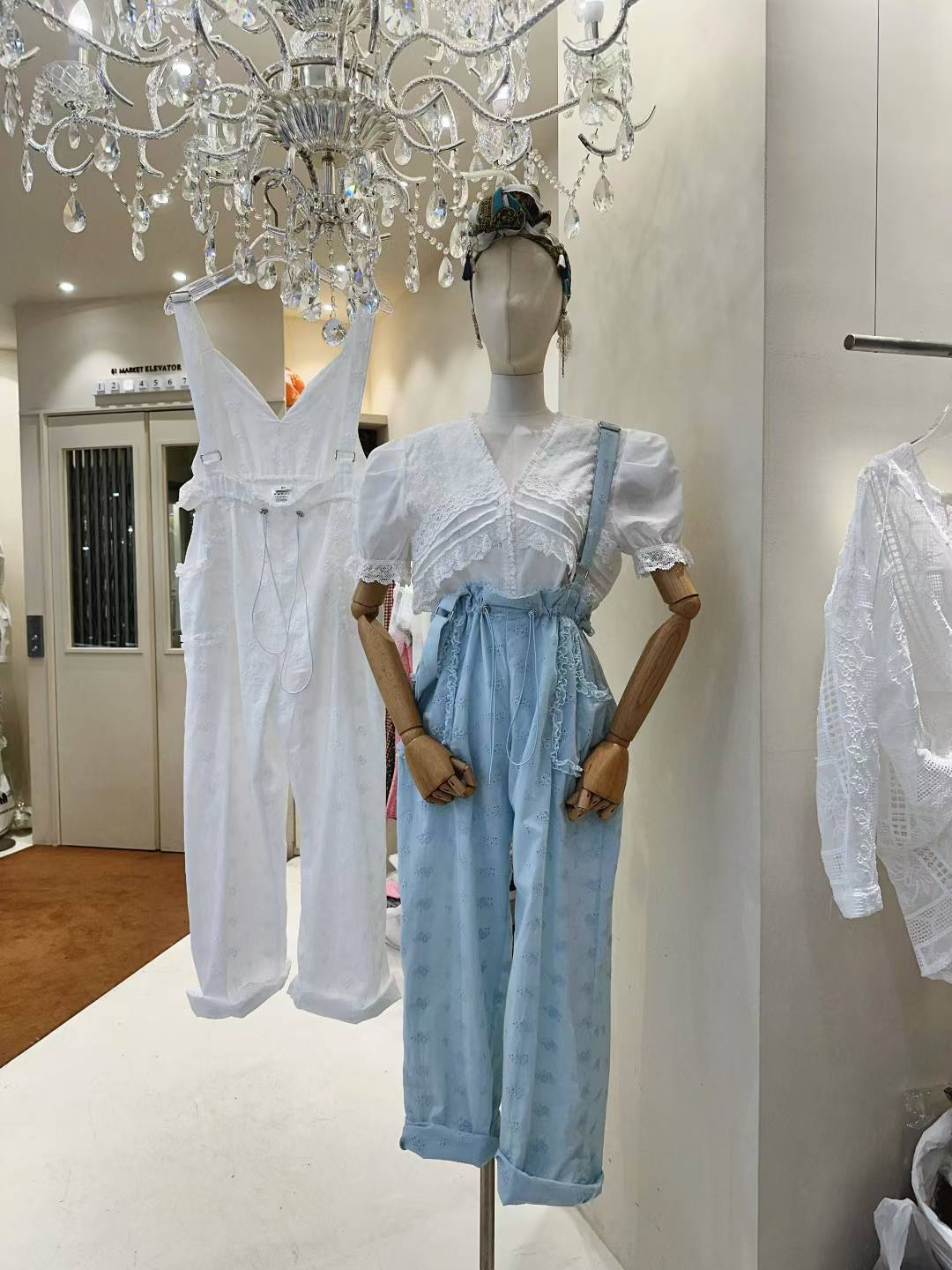 超級可愛的雕花布料吊帶褲,很可愛又很獨特喔~