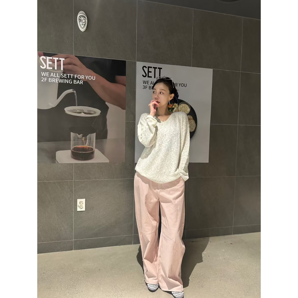 褲子下擺有扣子可以扣起來做造型,材質很好厚薄度夏天穿也不會熱喔~