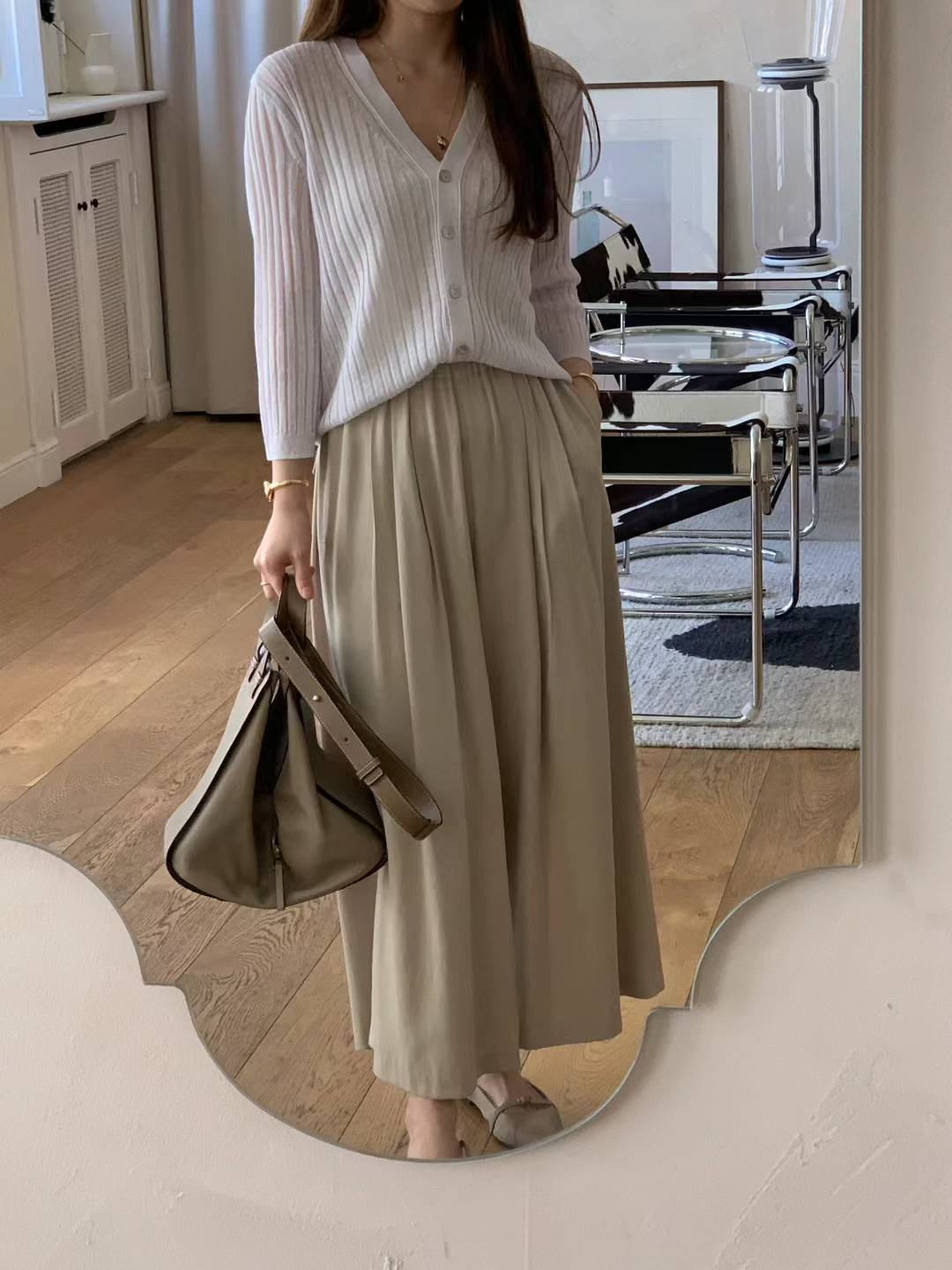 超級舒服的輕飄飄褲裙,長度大約到腳踝,人造絲和亞麻的材質夏天穿著也非常涼爽舒適,而且褲版優秀很好搭配,非常推薦喔~