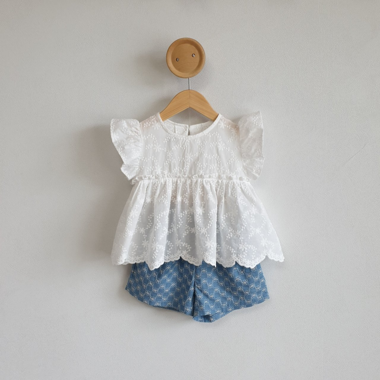 正韓童裝 花花刺繡淺藍牛仔短褲 90 現貨