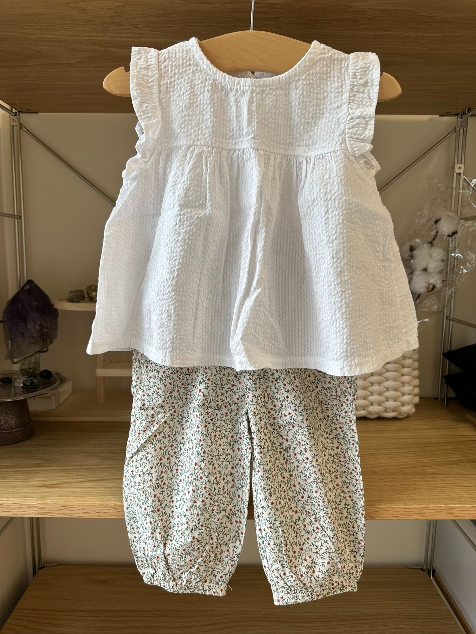 正韓童裝 泡泡棉荷葉袖背心白色上衣 3 現貨