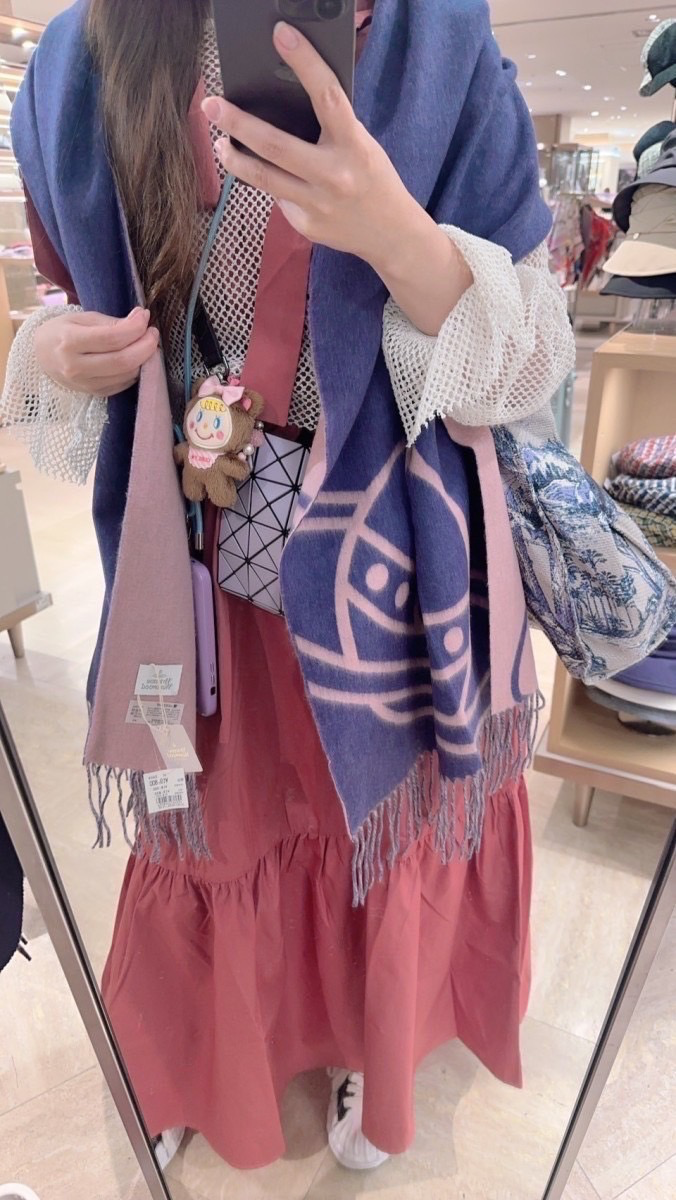 日本 Vivienne Westwood 西太后 羊毛雙色長圍巾 藍x粉雙色 現貨