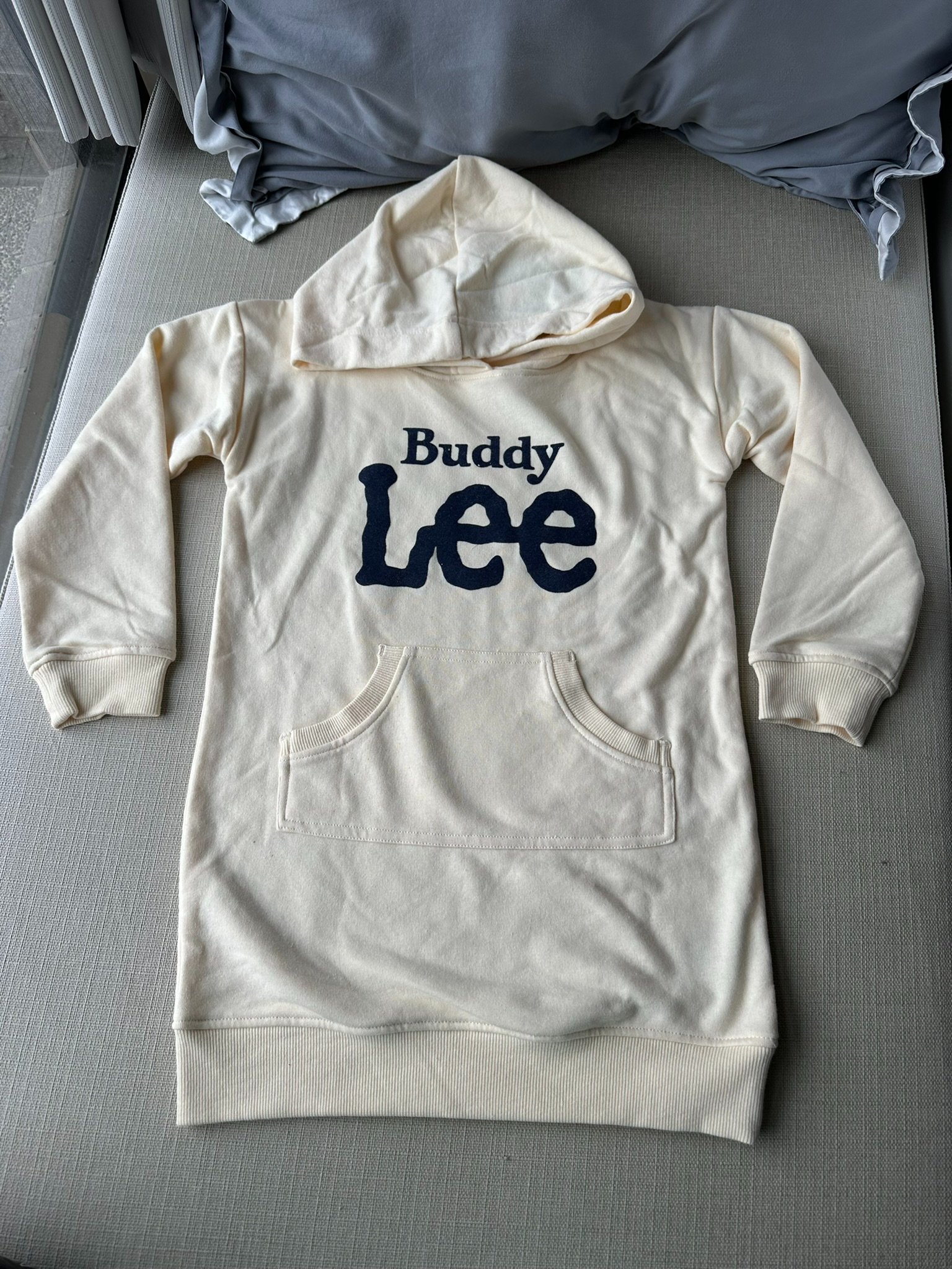 日本 Buddy Lee童裝 米白色長版帽T上衣120 無刷毛 現貨
