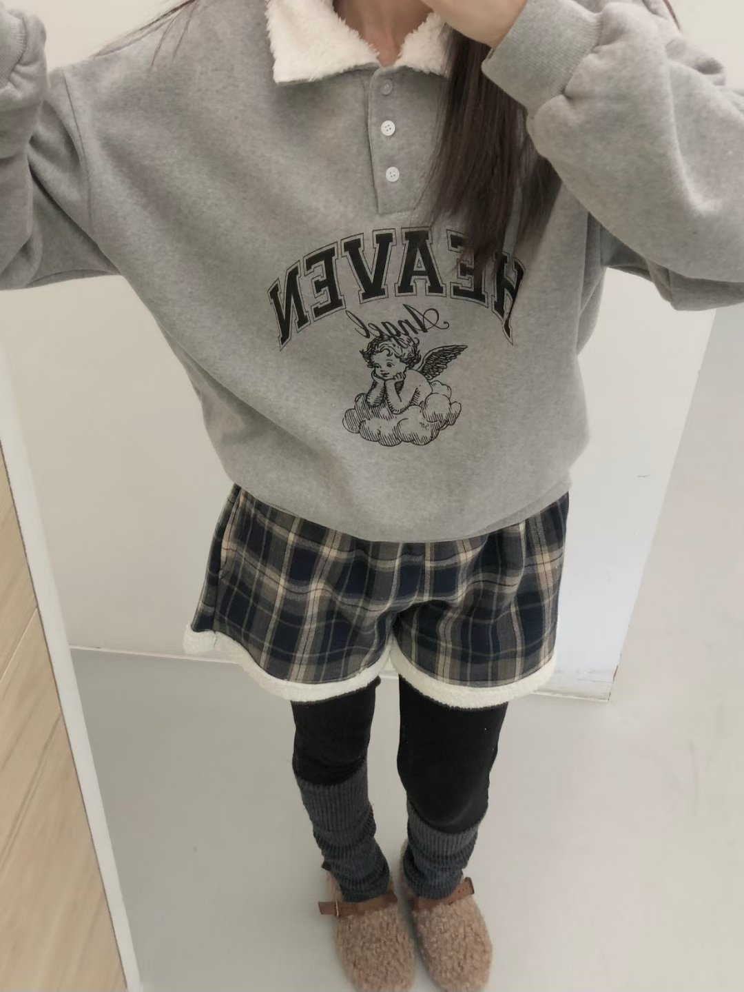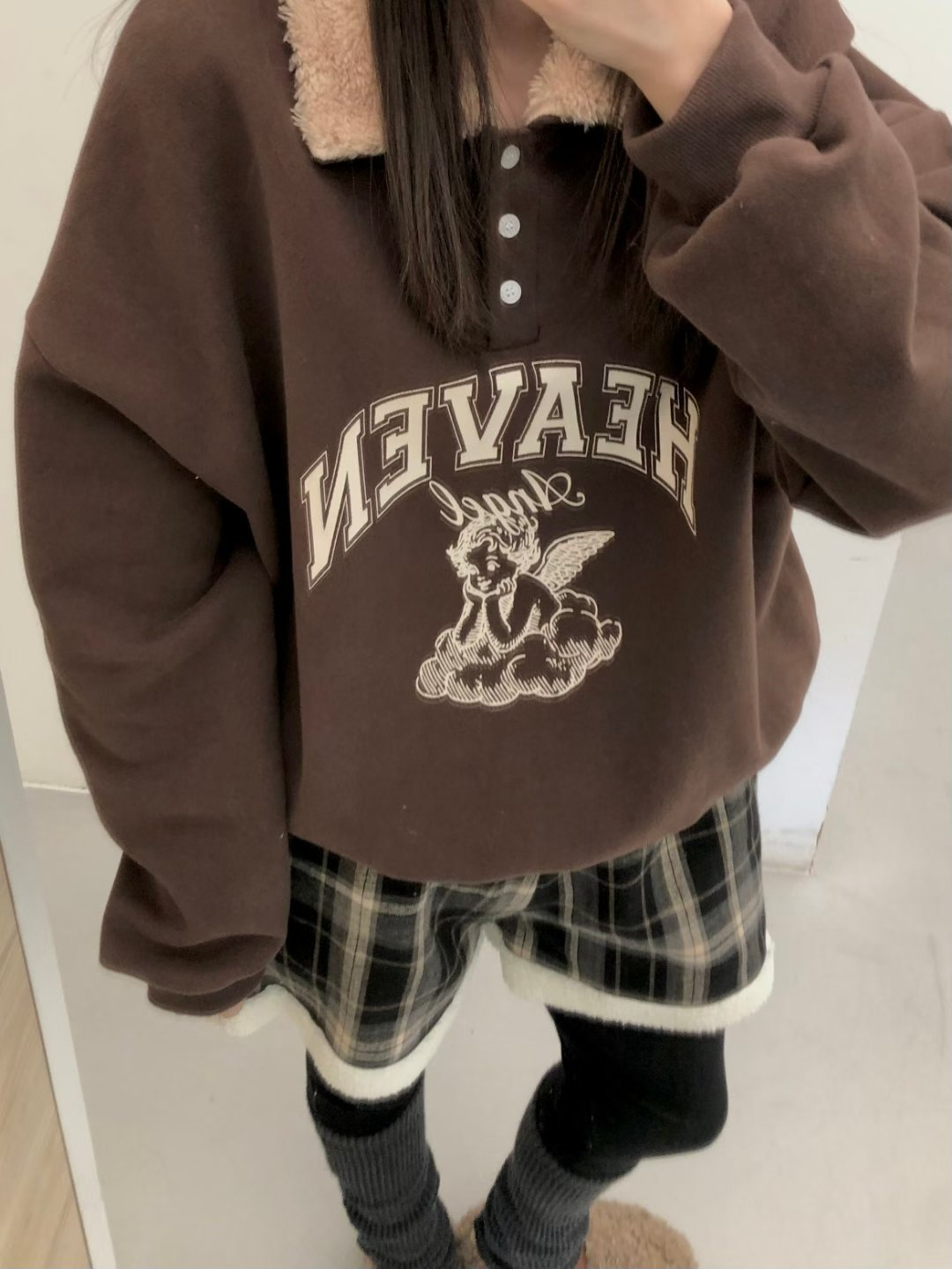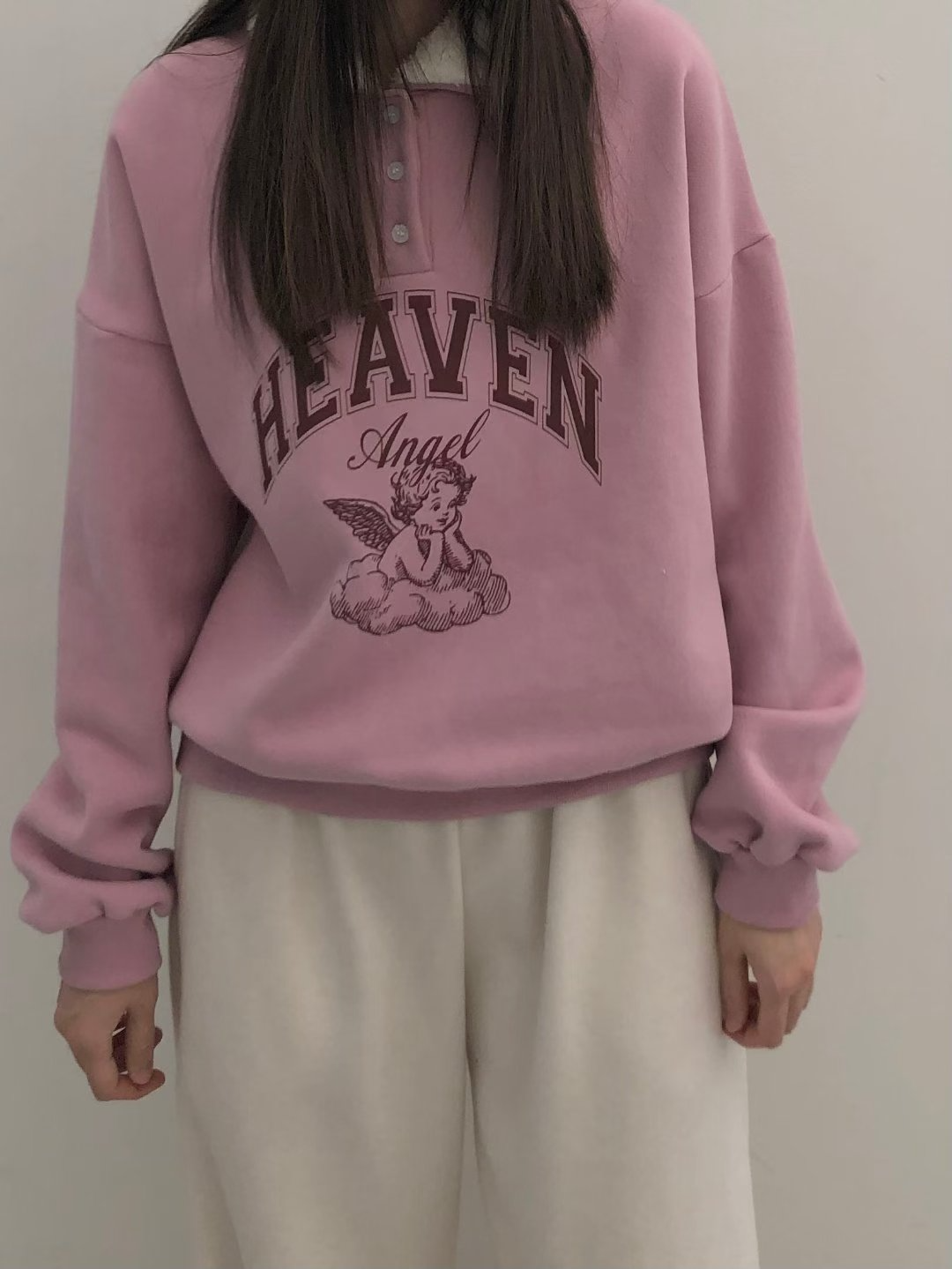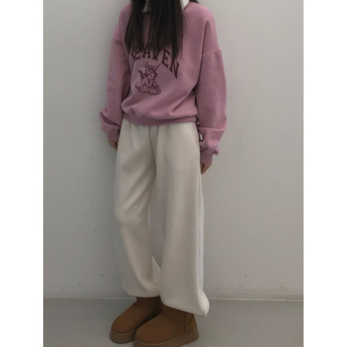 正韓 2way領子造型內刷毛天使大學T 粉色 現貨