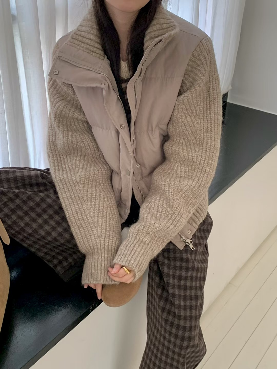 正韓 羽絨拼接羊毛袖爆款外套 三色 預購