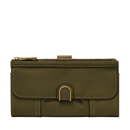 FOSSIL Cora 掀蓋釦式手拿長夾-SL6464376 精緻釦式掀蓋設計 柔軟羊皮 多功能收納 卡片零錢井然有序 ViralOff® 高性能抗菌 皮夾細帶扣式 做工細緻