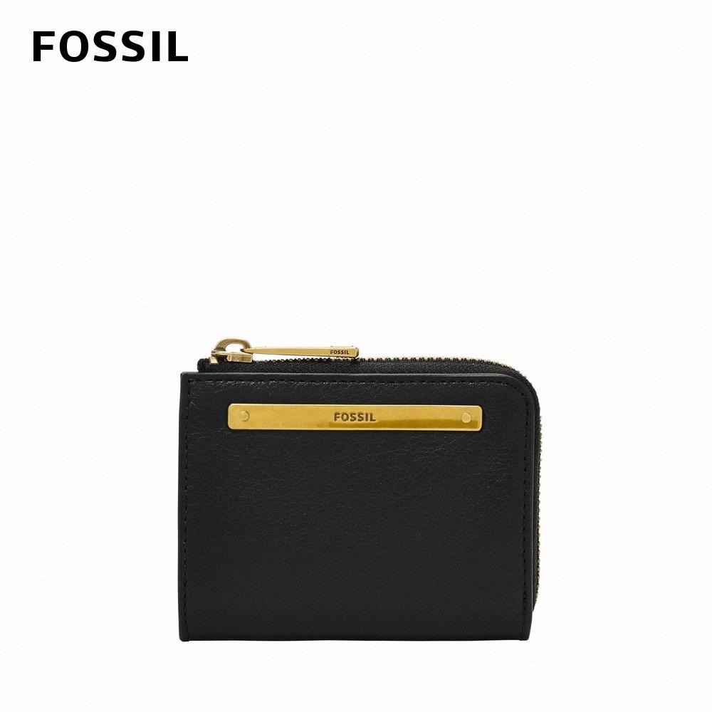 【FOSSIL】Liza 輕巧拉鍊零錢夾-黑色 SL6406001 質感品牌標誌 真皮皮革觸感 多功能設計 實用好搭