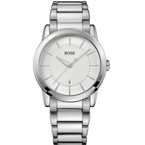 Hugo Boss 以德國求完美理念為設計精神 俐落風格和簡約造型融合為一體 讓簡約魅力展現在不鏽鋼錶殼上 是可以搭配於各種場合的時尚腕錶 ※基本資料※ 型號:H1512621 機芯:原廠石英機芯  動力:電池 ※規格※ 錶殼:約4.3 cm   鏡面:約 3.6 cm 錶帶:約 20cm      厚度:約 0.9 cm               ※顏色※ 錶盤:銀色   錶帶:銀色  指針:銀色  刻度:銀色 ※材質※ 錶殼:不鏽鋼    錶帶:不鏽鋼材質 鏡面:礦石/強化玻璃鏡面 ※其他規格※  錶扣:一般錶扣    防水:生活防水 配件:附原廠精緻包裝盒,原廠保證書,保固1年。 若您想預先調整錶帶,請於備註欄註明手錶內圍,我們將裁剪後連同多餘 錶節一同寄出,但已裁剪後恕不接受退/換貨,測量方式如下: 1.直接用皮尺在手腕上戴手錶處繞一圈調整長度後看幾公分 2.找一條線繞手腕一圈調整您要的長度後,用一般尺量線的長度