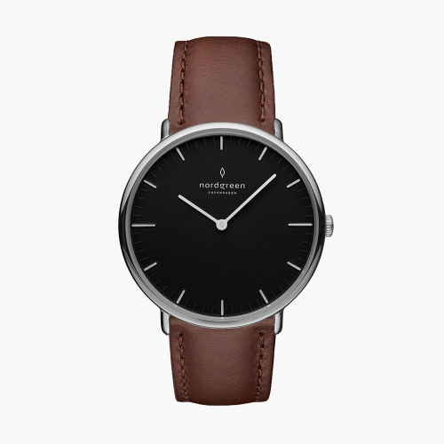 Nordgreen Native本真 月光銀系列深棕真皮腕錶36mm(NR36SILEDBBL)