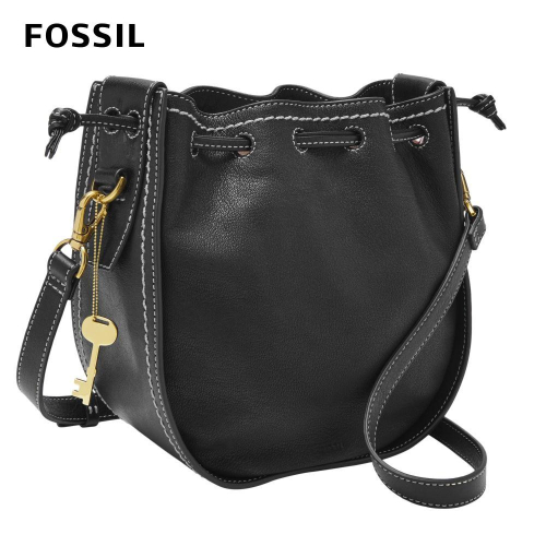 FOSSIL Palmer 真皮束口小籠包-黑色 ZB7981001 皮質柔軟 外型時尚好搭 大容量空間 抽繩開闔 色澤溫潤 精緻鑰匙配件小物