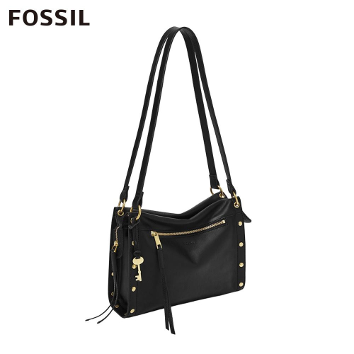 【FOSSIL】個性鉚釘焦糖色手提肩側背包 ZB7896001