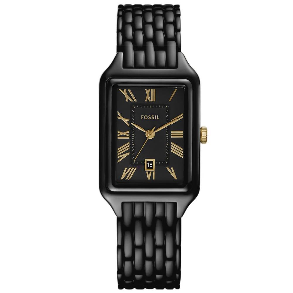 FOSSIL復古方形羅馬刻度小巧典雅日期不鏽鋼手錶-鍍黑/23mmES5385