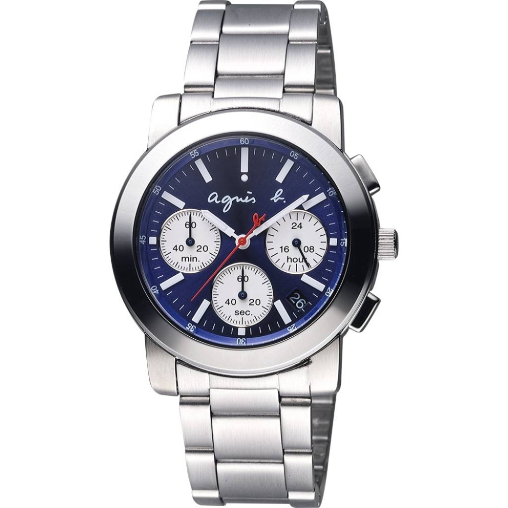 agnes b.三眼計時腕錶(BT3029X1)-藍x銀/38mmV654-KP30B