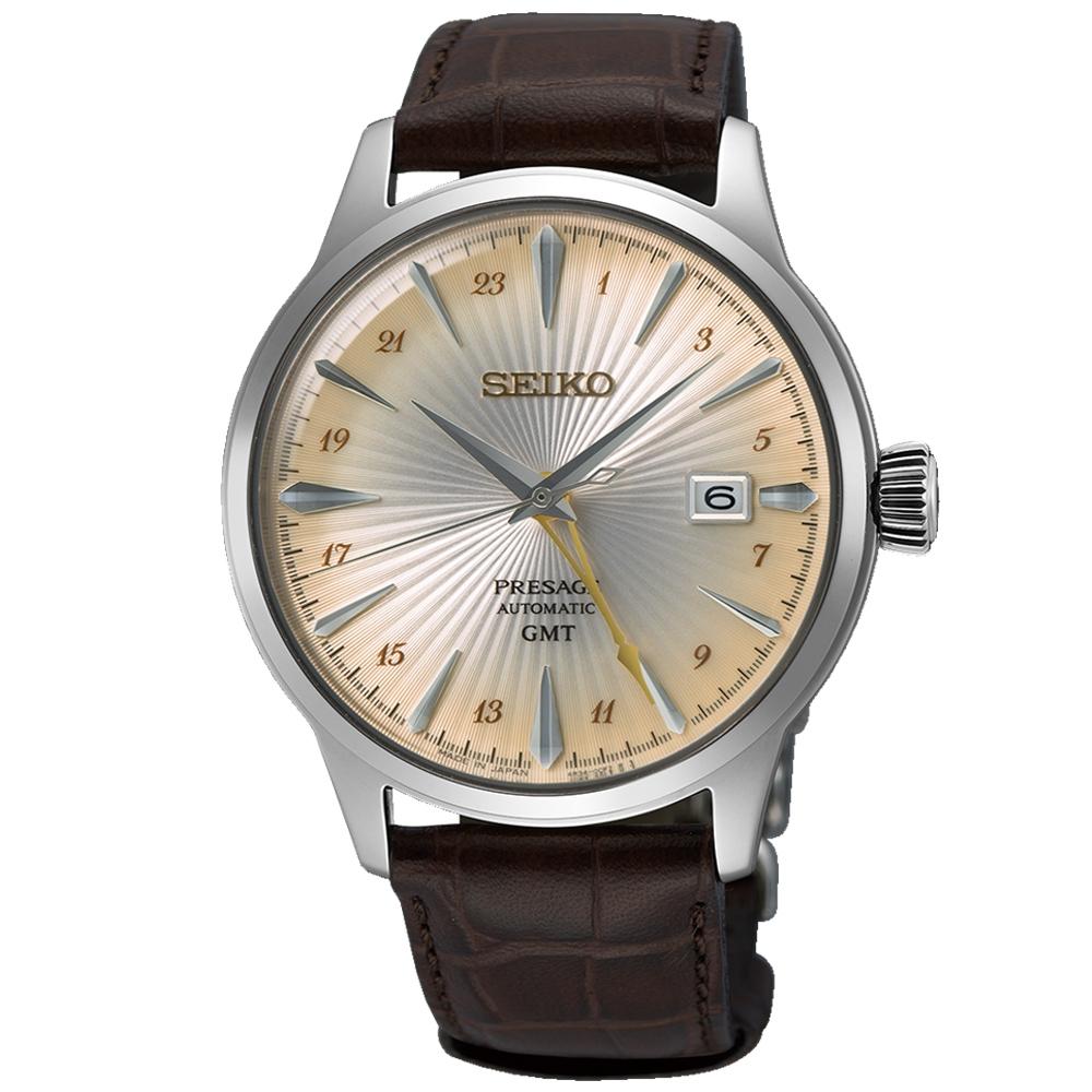 SEIKO 精工 PRESAGE 調酒師 雞尾酒GMT兩地時間機械錶-淡金 SSK041J1/4R34-00