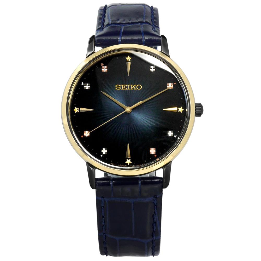 SEIKO 限量款 放射漸層 日本機芯 牛皮手錶-深藍x金黑框/38mm7N01-0JR0K