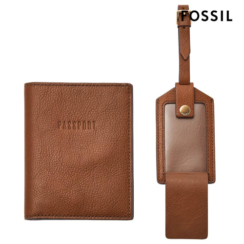 FOSSIL Gift Set 護照套行李牌禮物組-咖啡色 SLG1597200