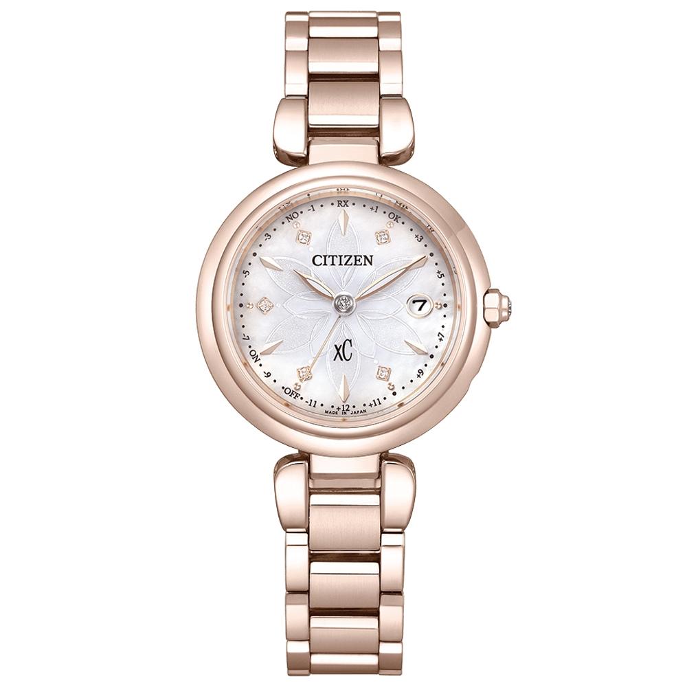 CITIZEN 星辰錶 XC系列Sakura pink櫻花粉紅金鈦金屬電波手錶 女錶 ES9467-71Y 附提袋