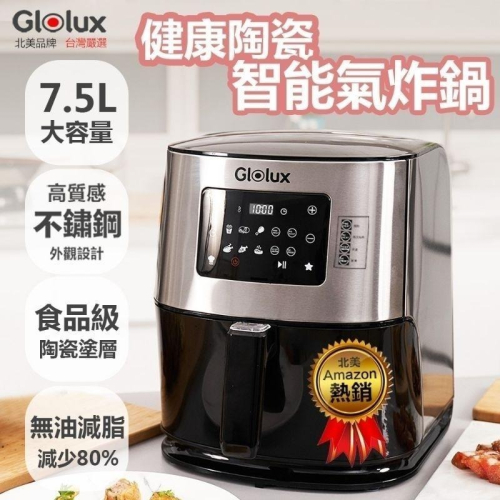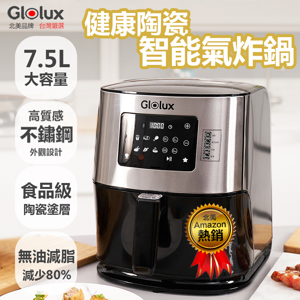 【Glolux】第二代 7.5L智能陶瓷氣炸鍋(銀)+搭贈2包烘培紙