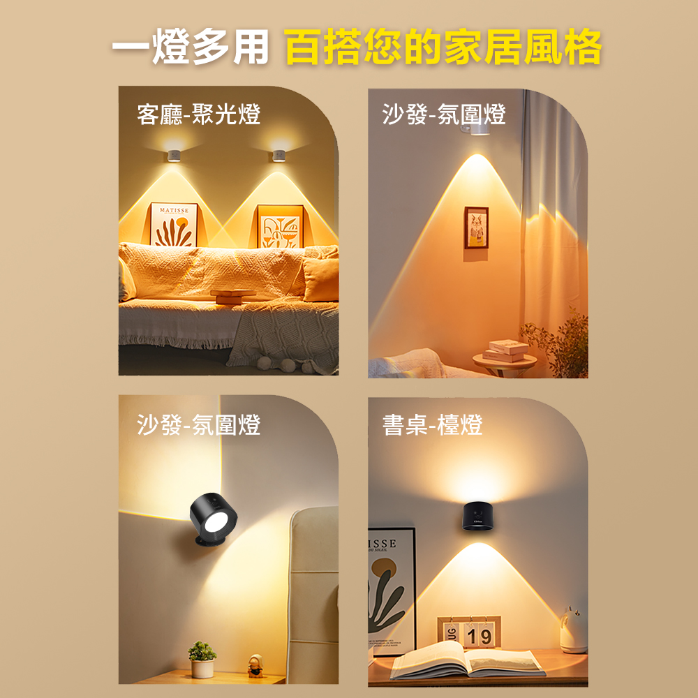 【Glolux 北美品牌】三色調光觸控壁燈 (2色可選:黑色/白色) 2入組