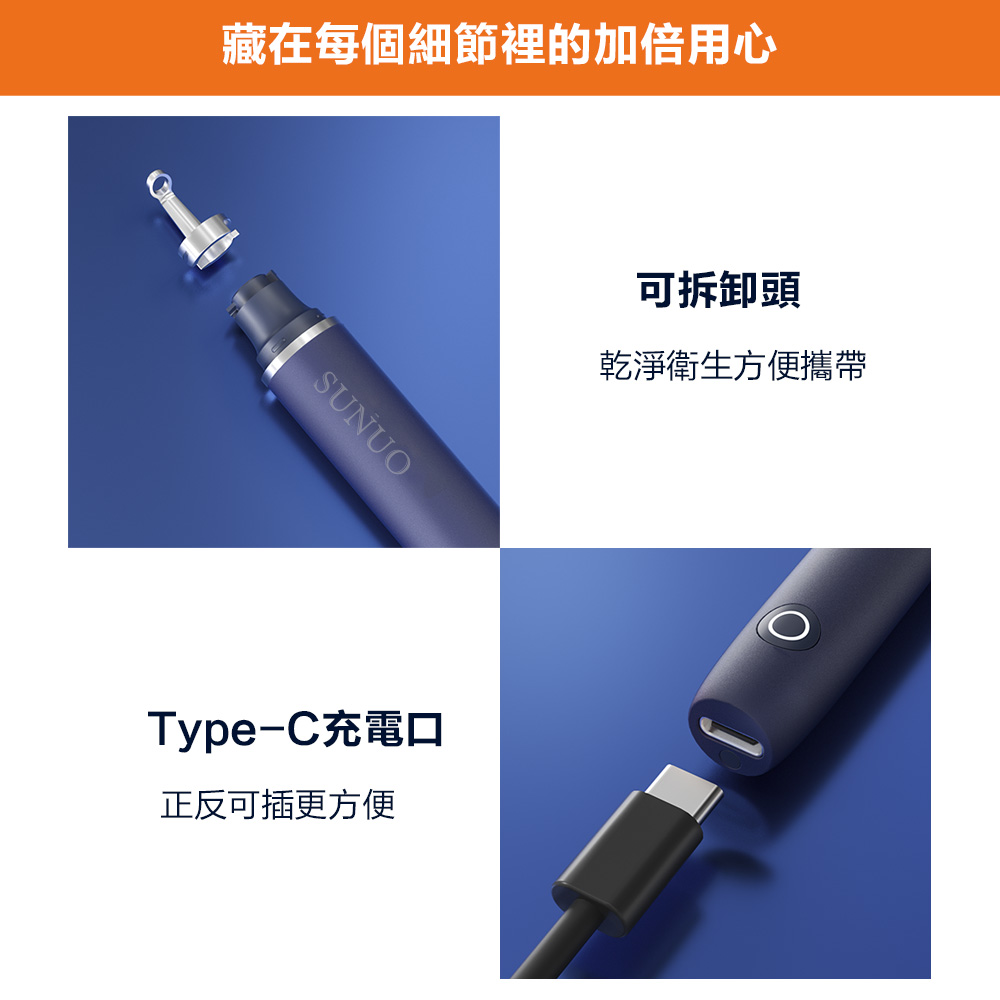 【SUNUO】 可視採耳棒 (深藍) 二合一多功能 可視掏耳機