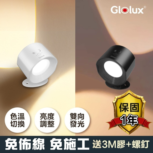 【限時購】【Glolux 北美品牌】三色調光觸控壁燈 2入組 (2色可選:黑色/白色)