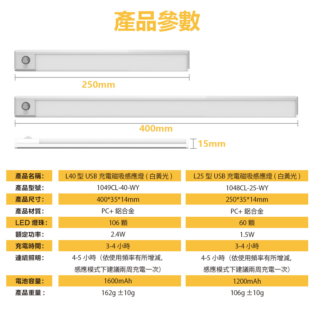 【Glolux 北美品牌】L25型 USB充電磁吸感應燈 (第四代 三色溫切換升級版)