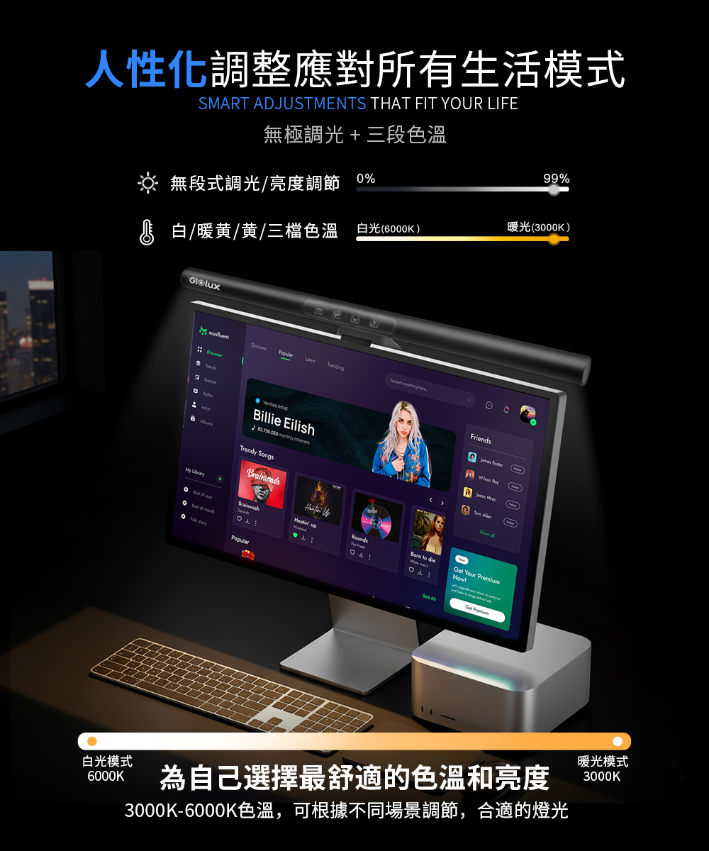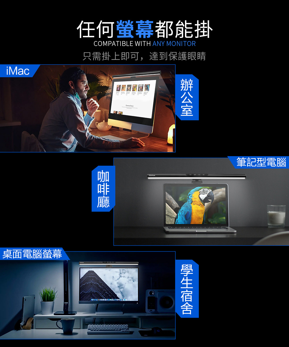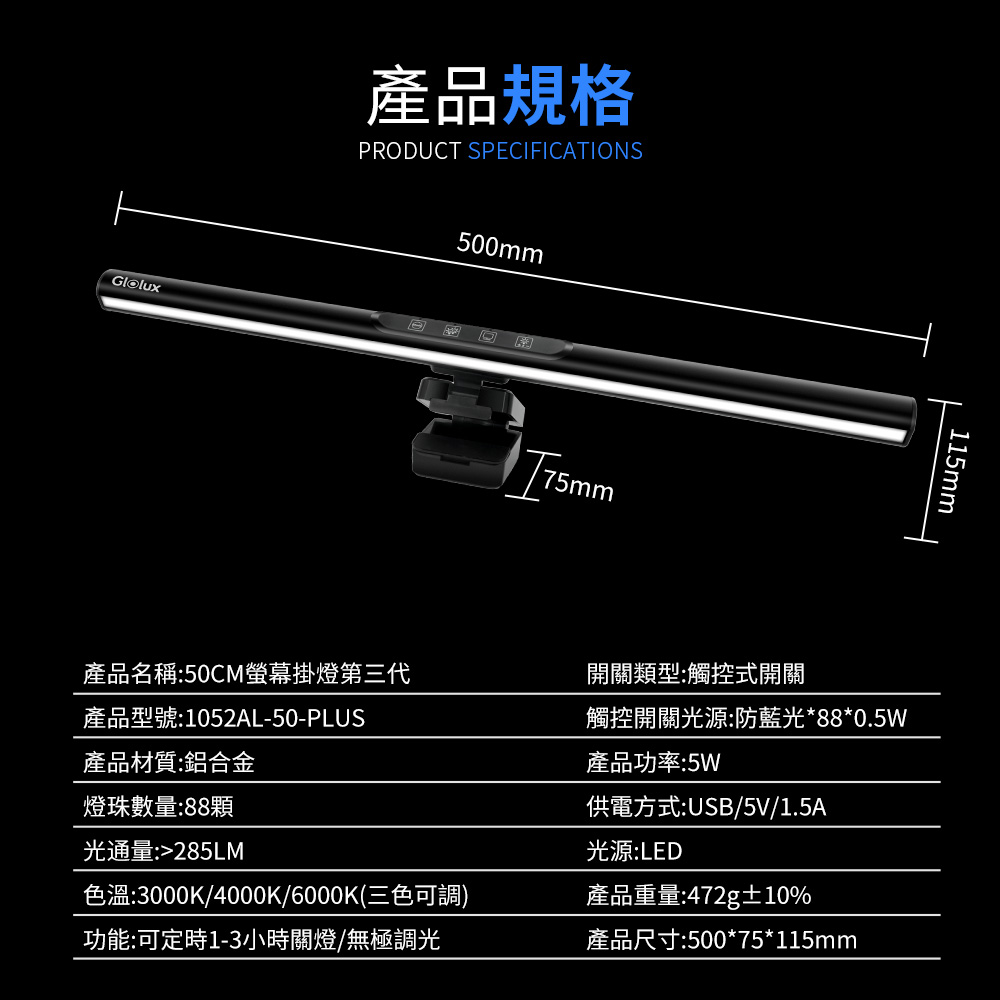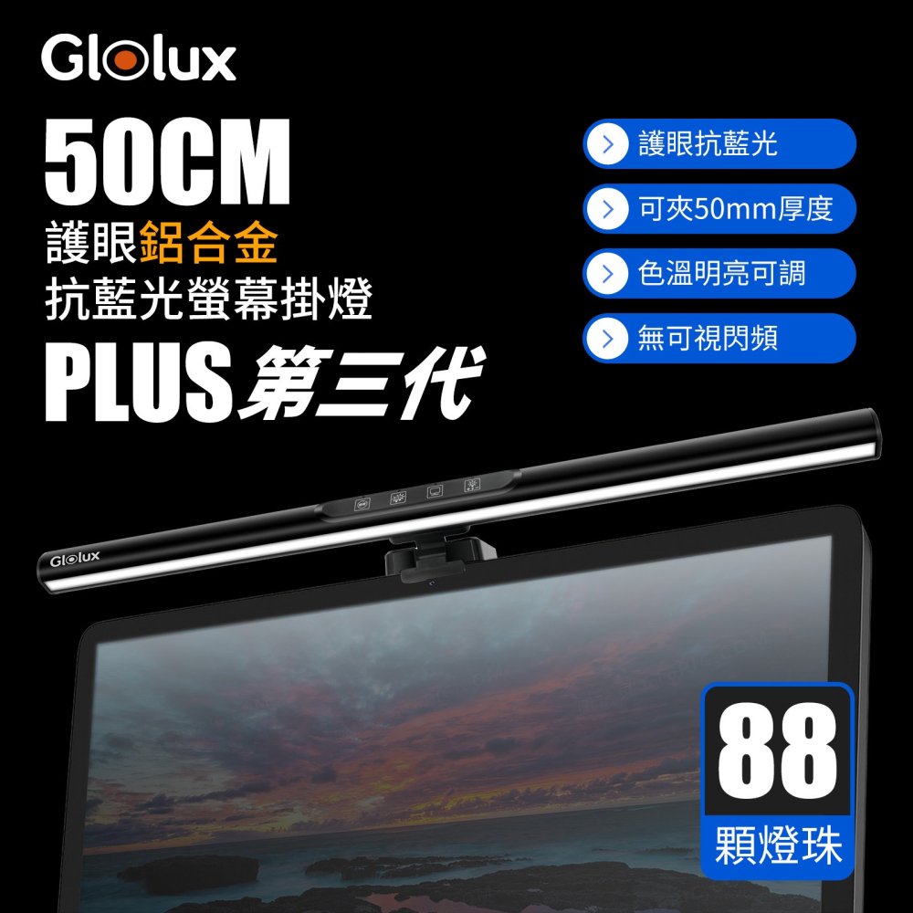 【Glolux】鋁合金 第三代螢幕掛燈 50CM 黑影護眼鋁合金螢幕掛燈 護眼 讀書燈 辦公 桌燈 遊戲燈 檯燈