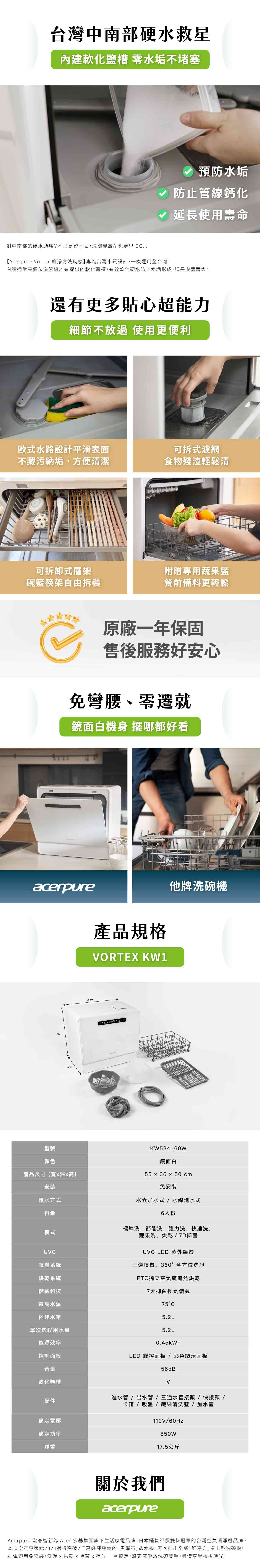 Acerpure VORTEX 桌上型全自動洗碗機 KW534-60W (★贈洗碗錠200顆