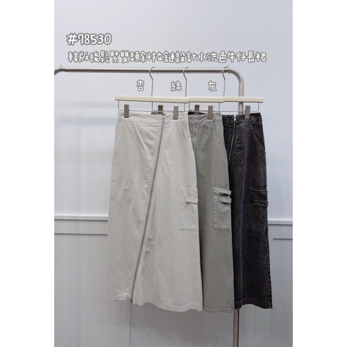 💜LL78530 後鬆緊雙頭斜拉鏈設計水洗色牛仔長裙