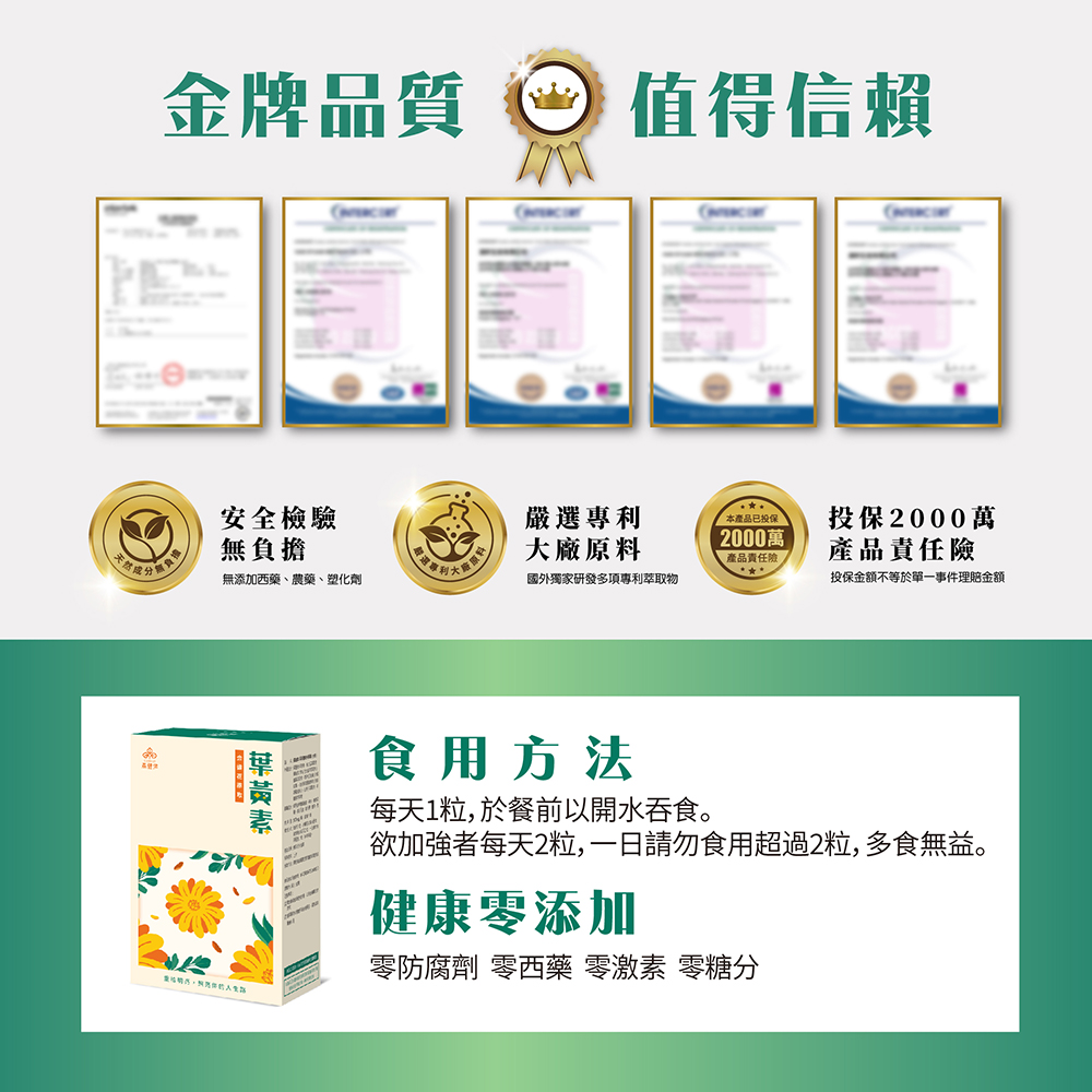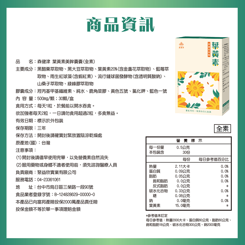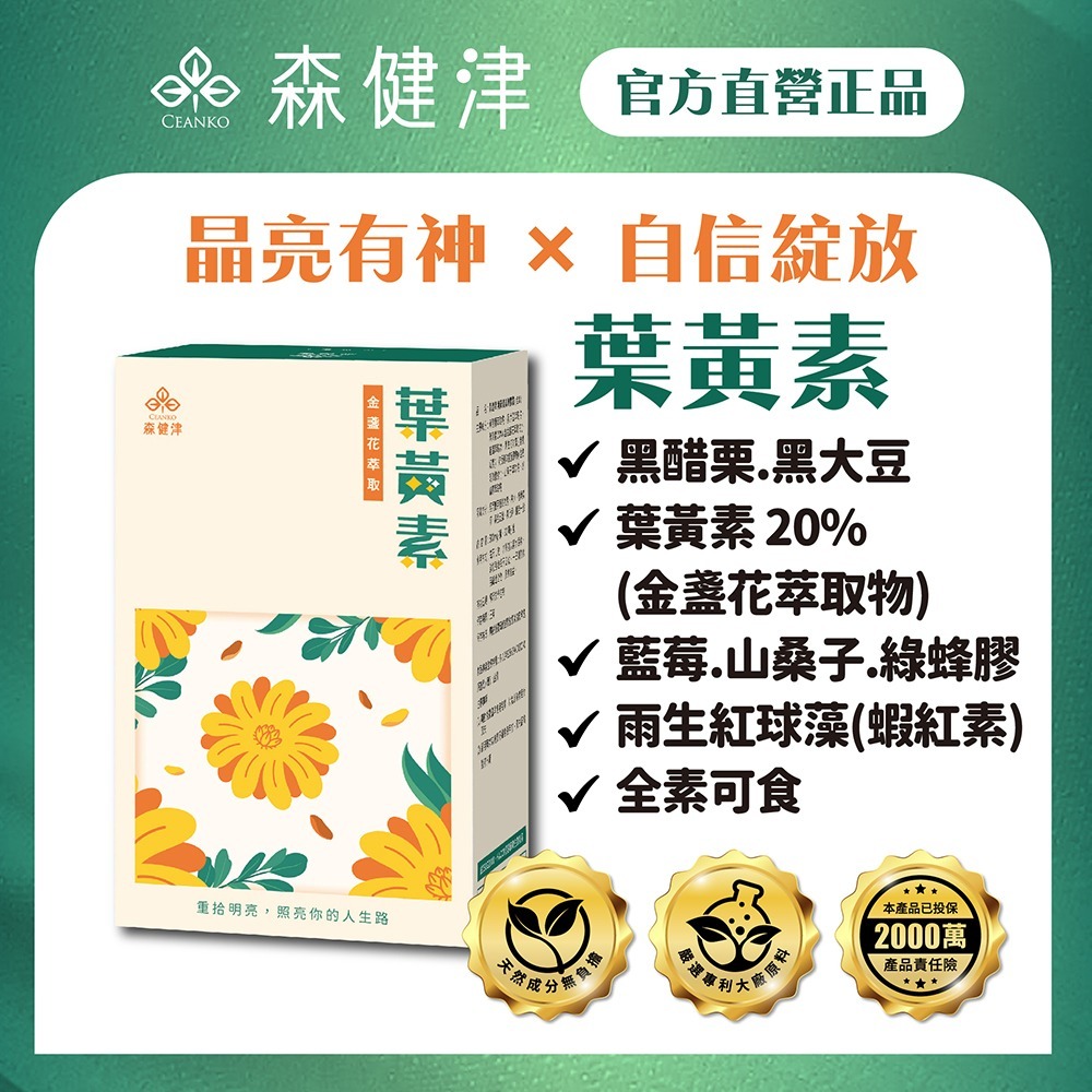 ✔ 葉黃素20%(金盞花萃取物):日常保養成分,幫助維持健康。