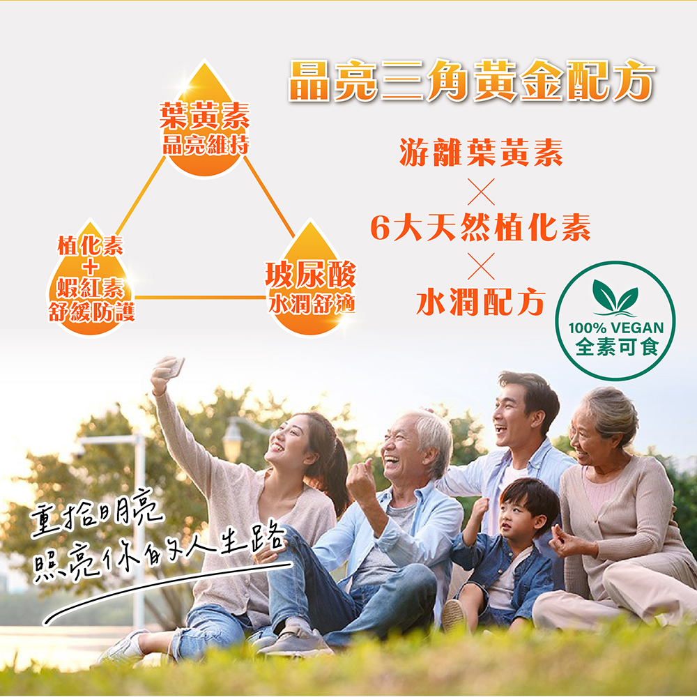 游離型葉黃素 ╳ 植化素 + 蝦紅素營養補給 ╳ 玻尿酸水潤呵護