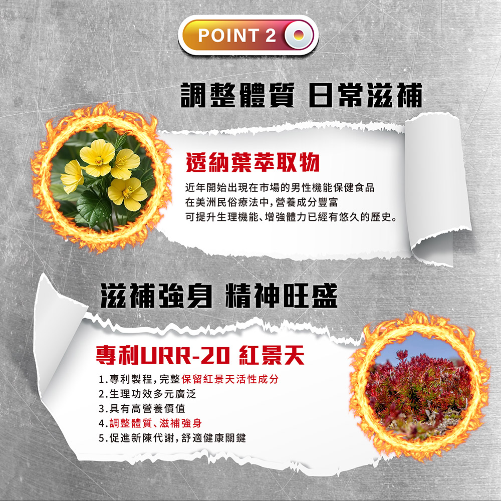 ✔ 透納葉萃取:中南美傳統強效草本,有助男性功能調節。