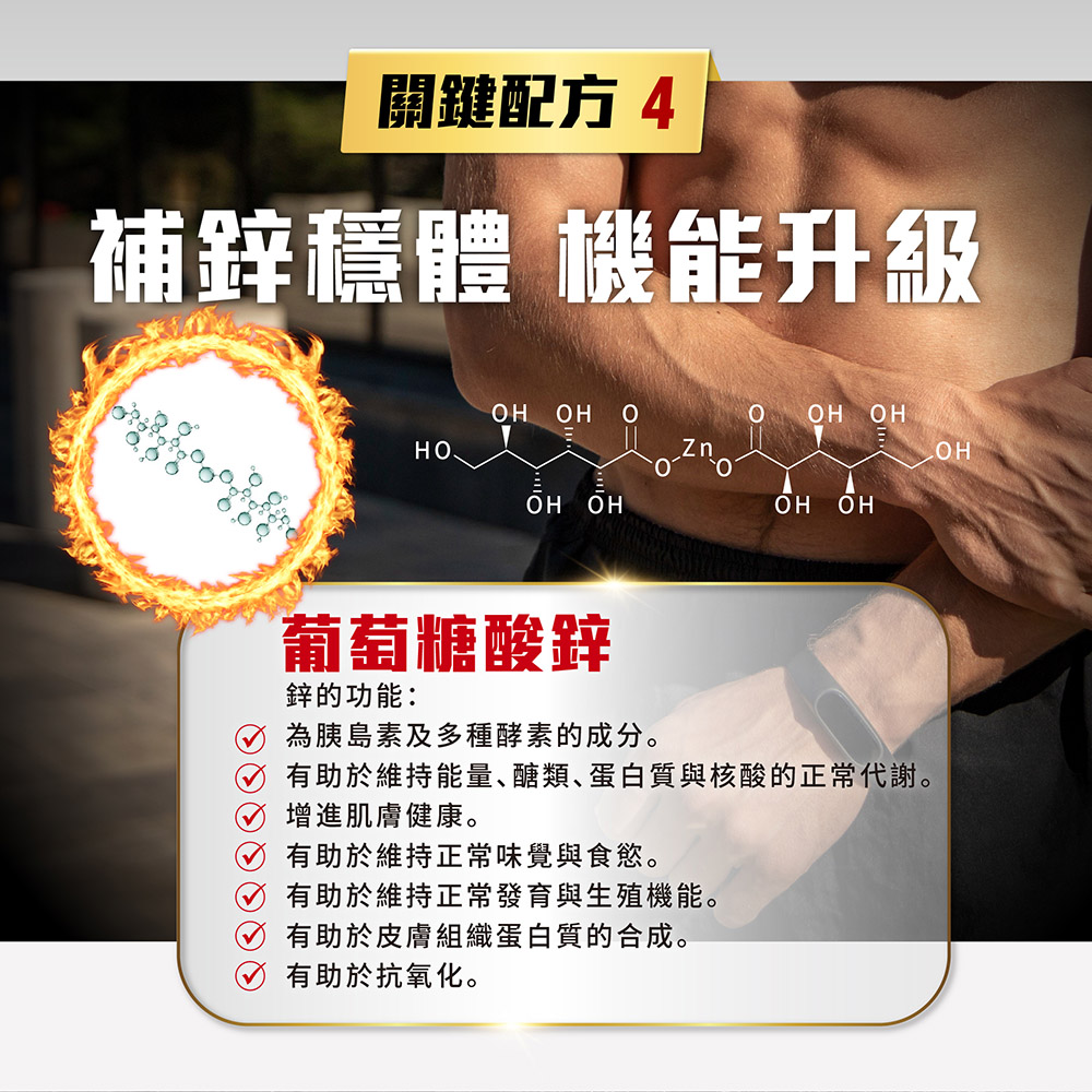✔ 葡萄糖酸鋅:微量元素來源,維持身體健康。