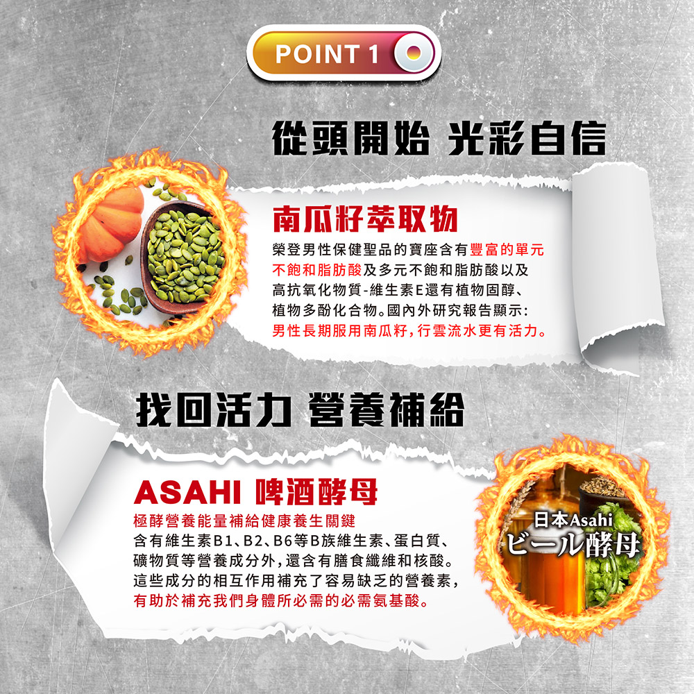 ✔ 南瓜籽萃取:男性保健聖品,提升活力、調整機能。