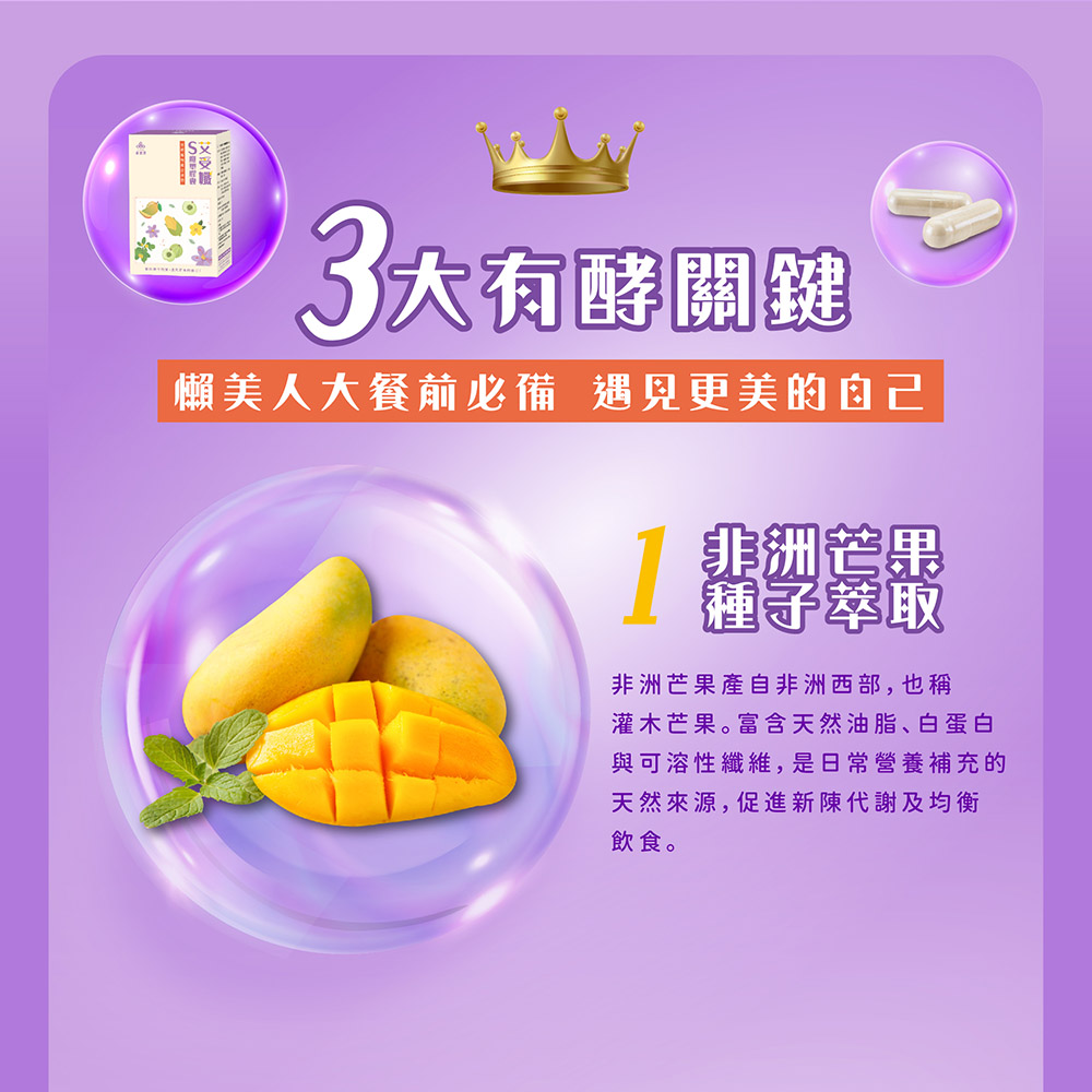 ✔ 專利非洲芒果萃取:含纖維與植物營養素,提供日常補給。