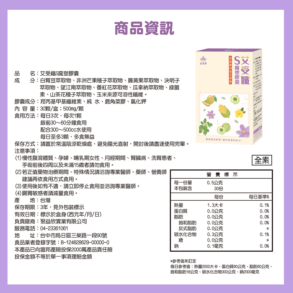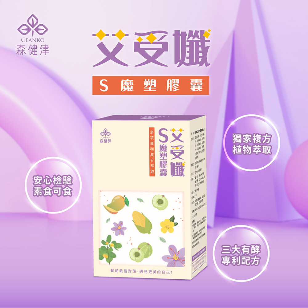 森健津-艾受孅S魔塑膠囊(全素)排便順暢,調整體質,促進新陳代謝,調節生理機能 體脂 s腰A4 便便糖 窈窕減糖輕斷食
