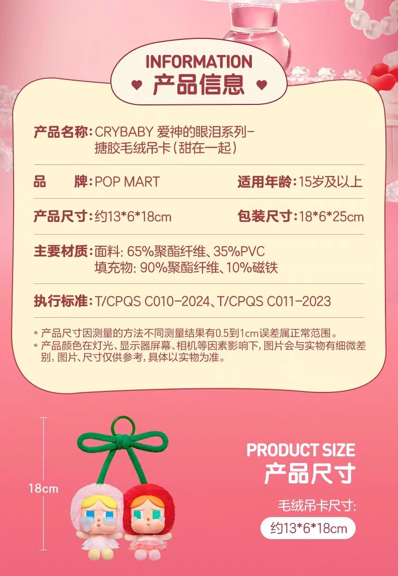 POP MART 泡泡瑪特 CRYBABY 愛神的眼淚系列 搪膠毛绒吊卡(甜在一起)