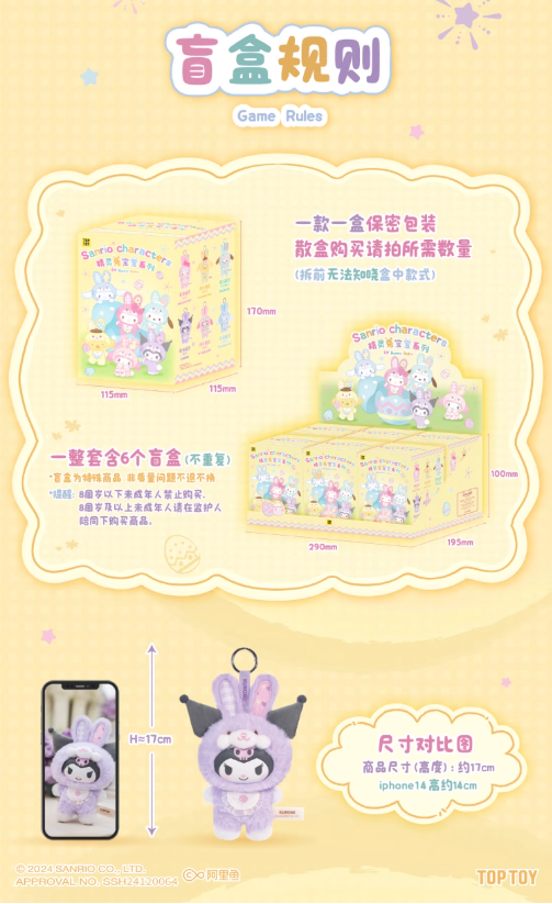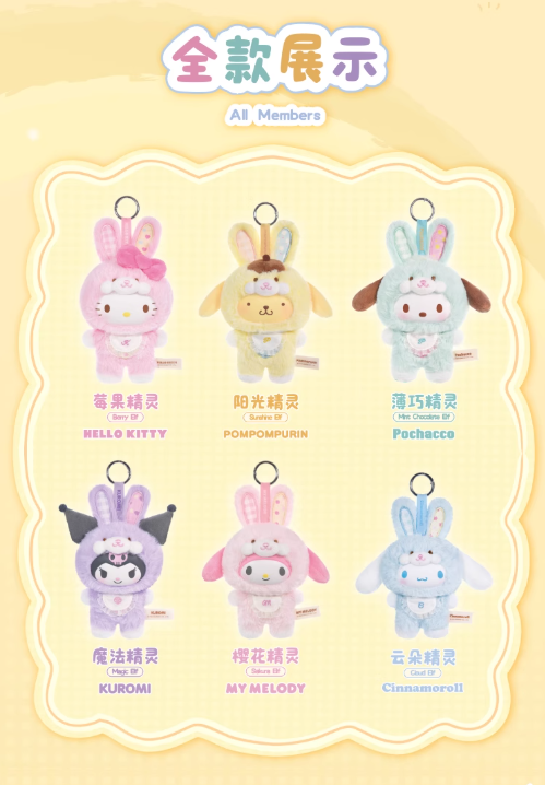 TOPTOY 三麗鷗 Sanrio 精靈兔寶寶系列 搪膠毛絨掛件盲盒 酷洛米 美樂蒂 凱蒂貓 帕洽狗 玩偶 吊飾 鑰匙圈