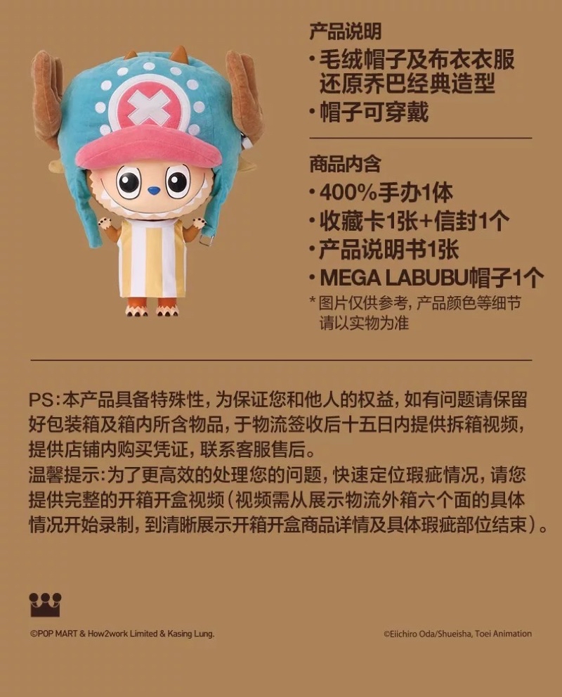 POPMART 泡泡瑪特 MEGA LABUBU 托尼托尼喬巴 400% 航海王 公仔 擺件 動漫