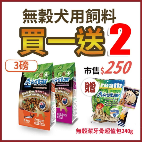 Astar 潔牙配方無穀狗糧 3磅 狗飼料 全齡犬飼料 幼犬飼料 高齡犬 成犬