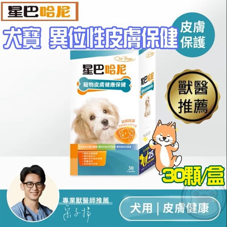 (3)專利機能性益生菌 (STP1):活性高、定殖力強,動物實驗證實 |研究性|15 大專利,皮膚好好,營養補給全面守護 |作用性|寵物皮膚保健,維持皮毛良好狀態 |適口性|膠囊咀嚼方便、好入口 ➧ 產品訊息 品名:星巴哈尼-犬用皮膚健康保健 內容量:每顆 500 毫克,共 30 顆裝