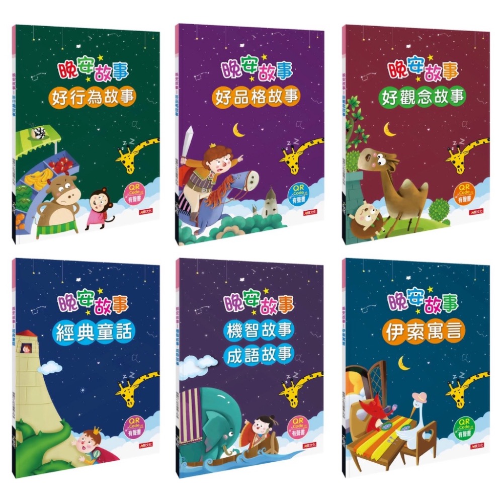 本套書共有七大類(經典童話+伊索寓言+好品格故事+好行為故事+好觀念故事+機智故事+成語故事),96則故事,孩子愛聽不會膩!