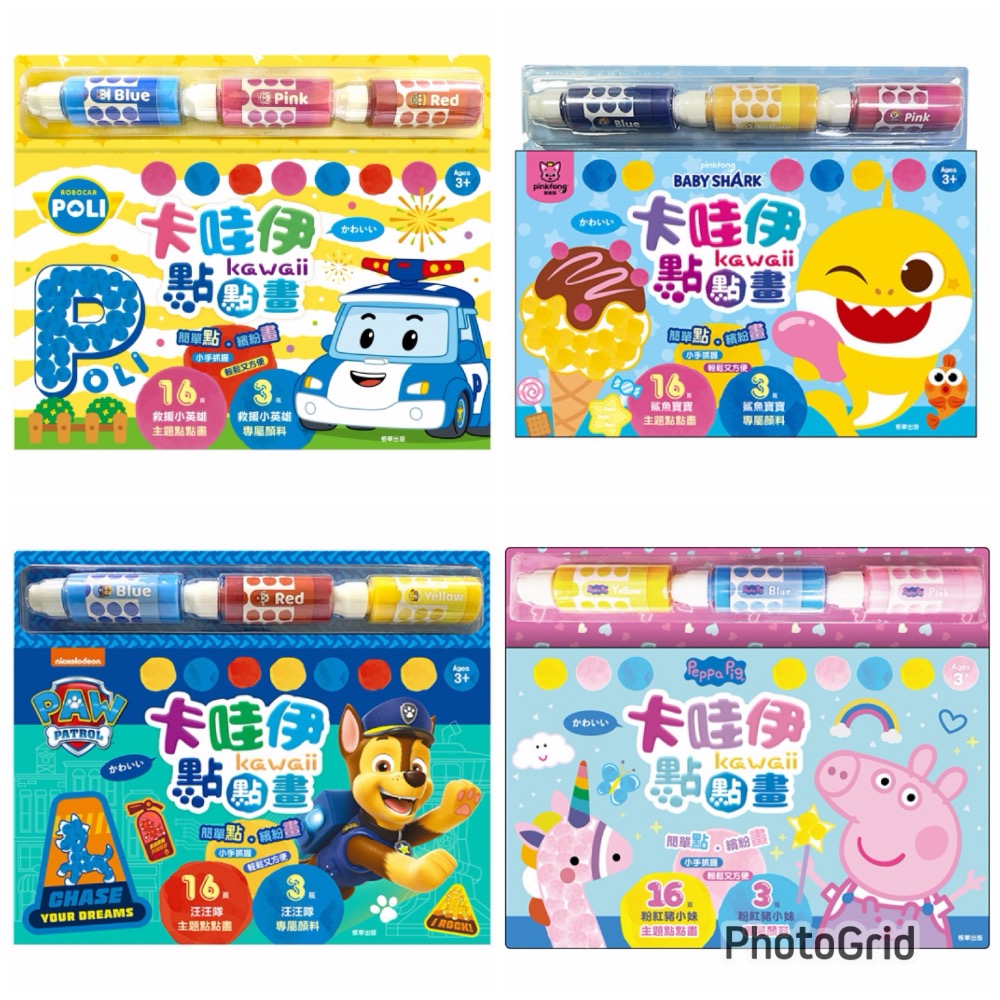 ◆本書共有16頁,附三瓶汪汪隊專屬色顏料。顏料瓶適合小手抓握,簡單點,繽紛畫。