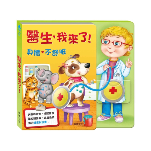 - 可以利用神奇聽診器,加入醫生的治療活動,引導孩子閱讀故事融入對話的情境。