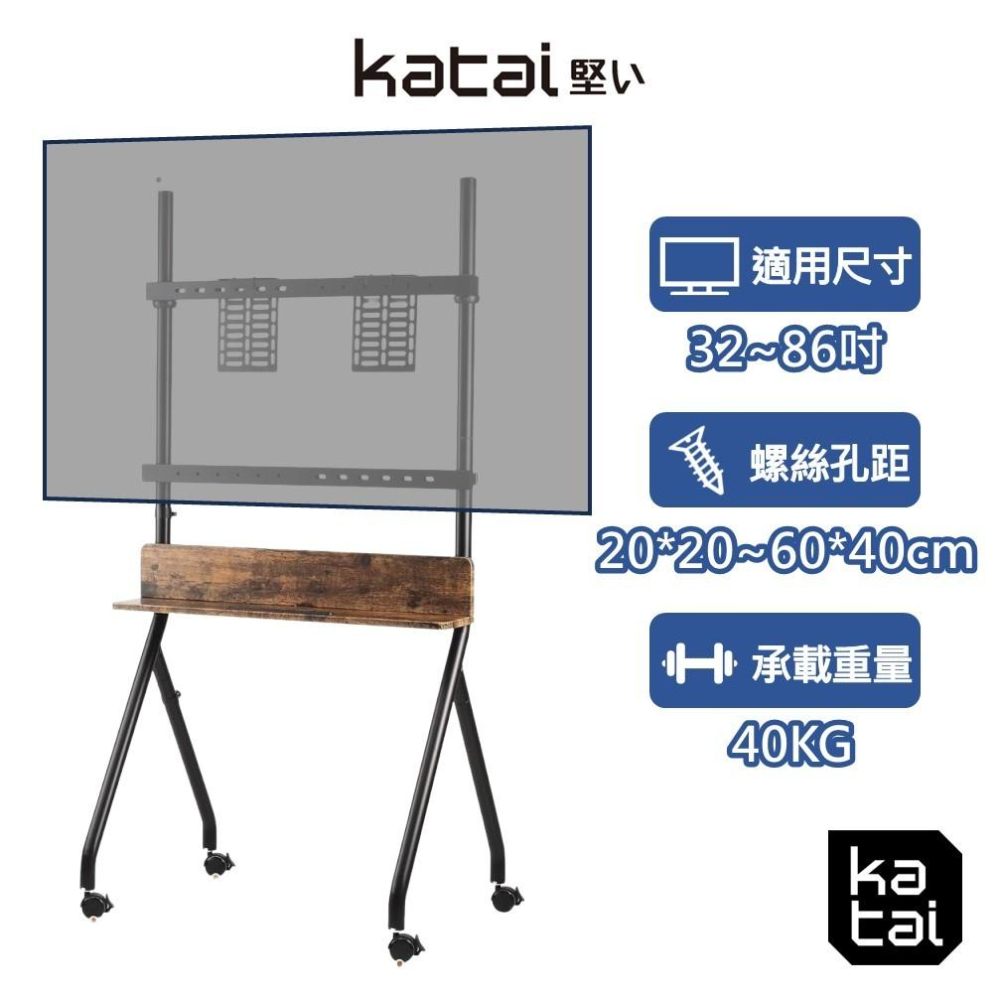 Katai 32-86吋固定式液晶電視立架 附輪子 木質立架 電視落地架 電視腳架 廣告刊板架 螢幕架 ITW-TF04
