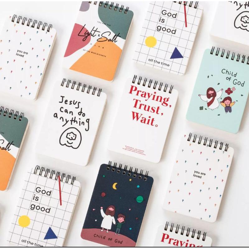 💫初心角落💫書寫恩典 手繪卡通線圈記事本 便條記事本 上掀式 每張有聖經金句 80頁 便攜式 褔音商品 受洗禮物 基督教