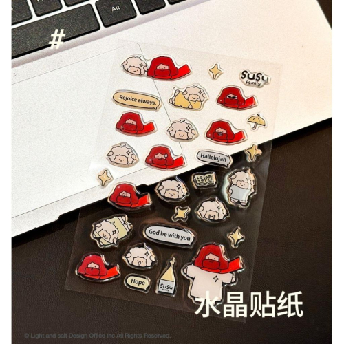 🌟 SuSu Family 插畫水晶貼紙 把日常生活裝飾得更有溫度 ✨ 這組充滿療癒感的 SuSu Family 系列貼紙,結合耶穌、小羊、星星和英文祝福短句, 讓你的筆記本、手帳、手機殼、電腦、行李箱…都能帶著「信仰 × 生活」的陪伴。 💡 商品特色 立體滴膠工藝:晶透亮面,圖案更生動。 防水PVC材質:耐用不易破,隨貼隨用。 多款圖案:耶穌、小羊、星星、教堂、Hope、Rejoice always、God be with you…滿滿祝福元素。 隨心DIY:可裝飾手帳、卡片、禮物包裝,也能貼在文具、3C產品或冰箱上。 📏 商品規格 主題:SuSu Family 插畫水晶貼紙 尺寸:約 10 × 15cm(含包裝) 材質:高透PVC + 滴膠工藝 包裝:卡紙 + 透明OPP袋 🎁 不論送朋友,或自己收藏,都能在日常中多一份療癒與盼望。
